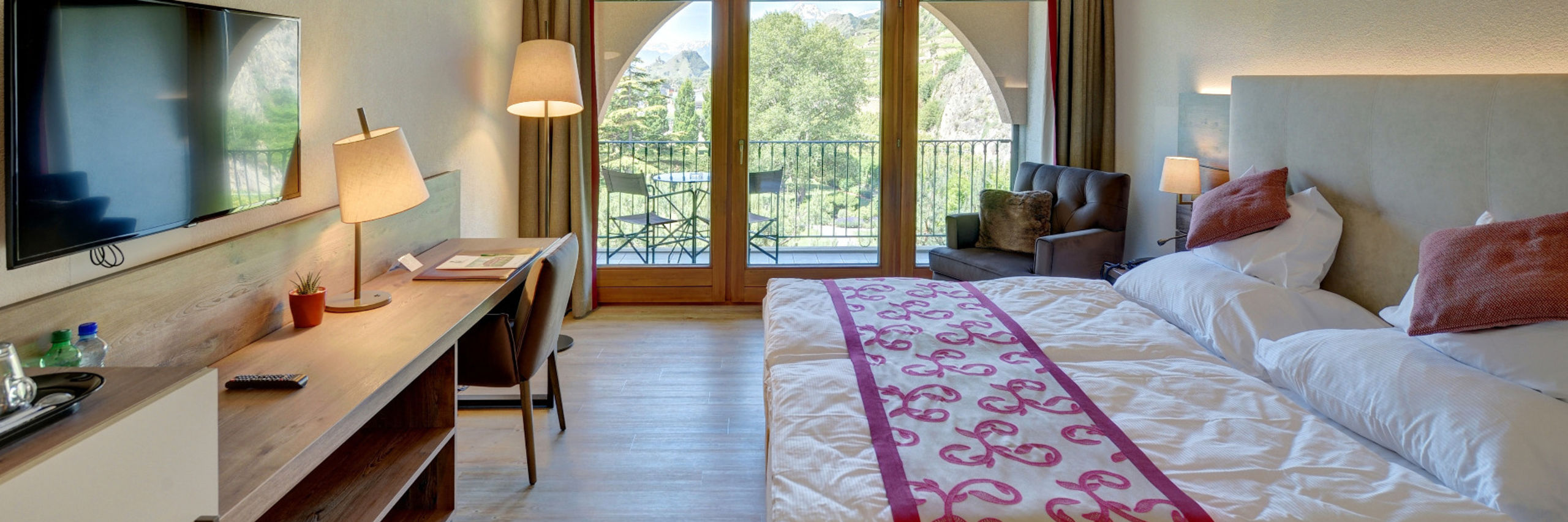 Hotel des Vignes is located in the heart of Valais in Uvrier-Sion near many internationally known cultural centres. It is an ideal location for a business stay, a romantic getaway or family holidays in Valais. It is surrounded by many ski resorts from Crans-Montana to Verbier, famous golf courses and local wine tasting options. It is also a perfect starting point for adventure trips such as rafting on the Rhône and for many biking and hiking trips.