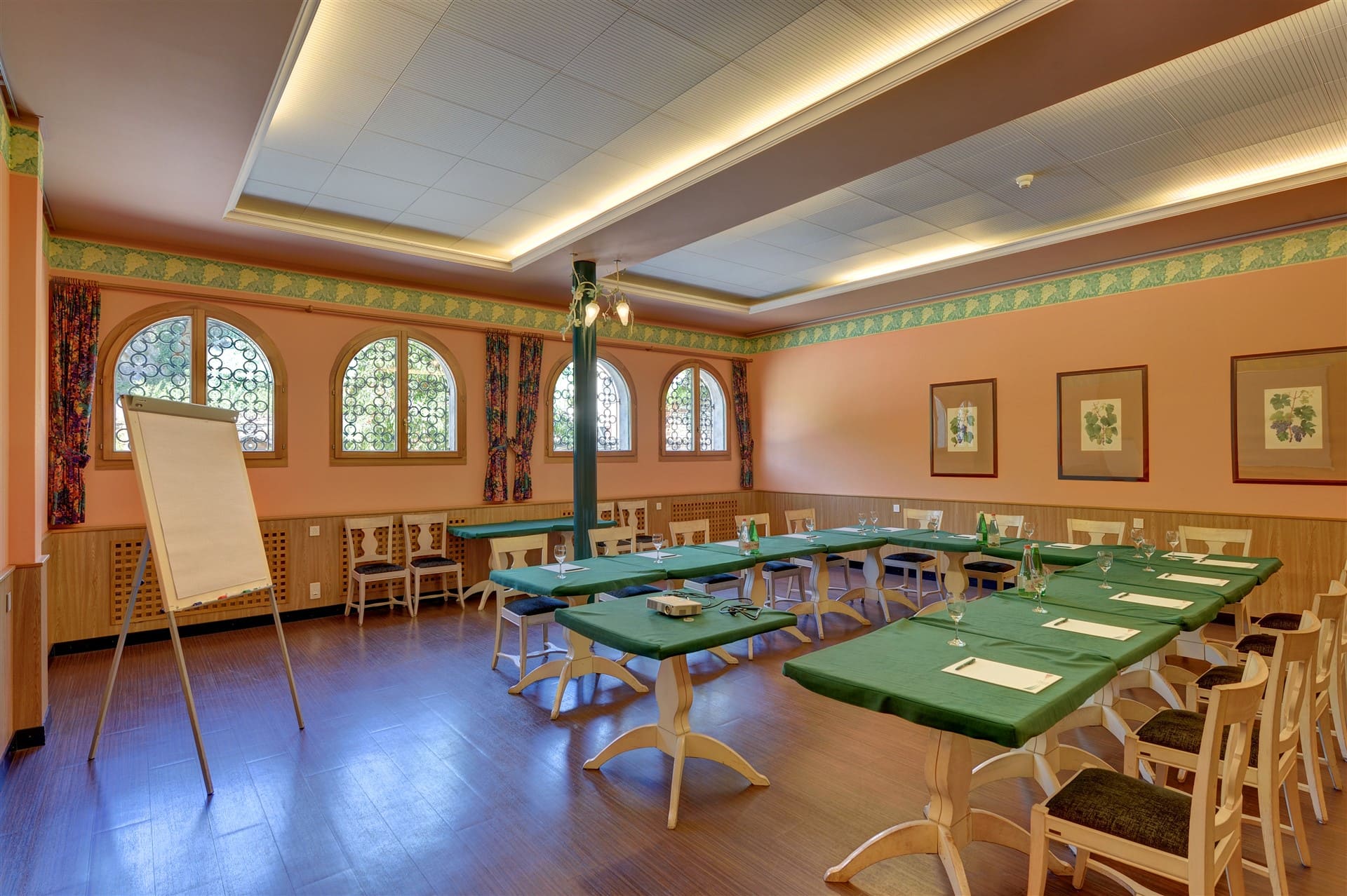 donnant à l’arrière de l’Hôtel peut accueillir entre 20 et 50 personnes et peut servir aussi bien de salle de banquet que de séminaire. - La salle des Vignes